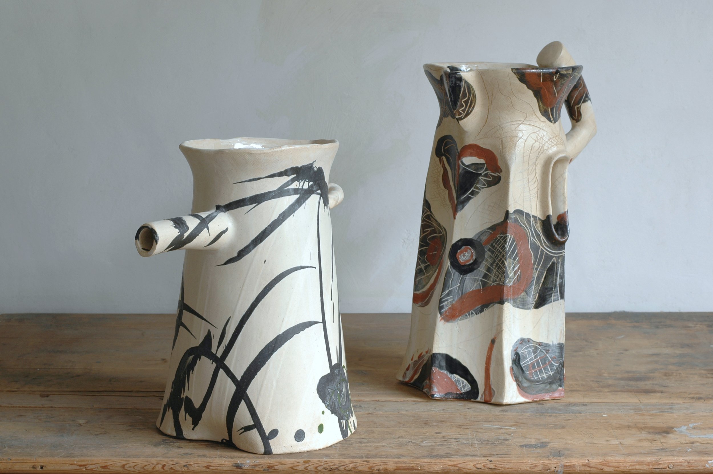 ‘Throughout her career, Alison Britton has remained committed to the ceramic container, exploring both its formal possibilities and its capacity to hold and communicate thoughts and ideas. Her pots are marked by ambiguity and contradiction, sitting between the sculptural and the everyday, the civilised and the wild, the real and the imagined. A work may seem to be both the representation of a pot as well as an actual one – a pot observed through the artist’s eye, informed by the experience of modern painting.’