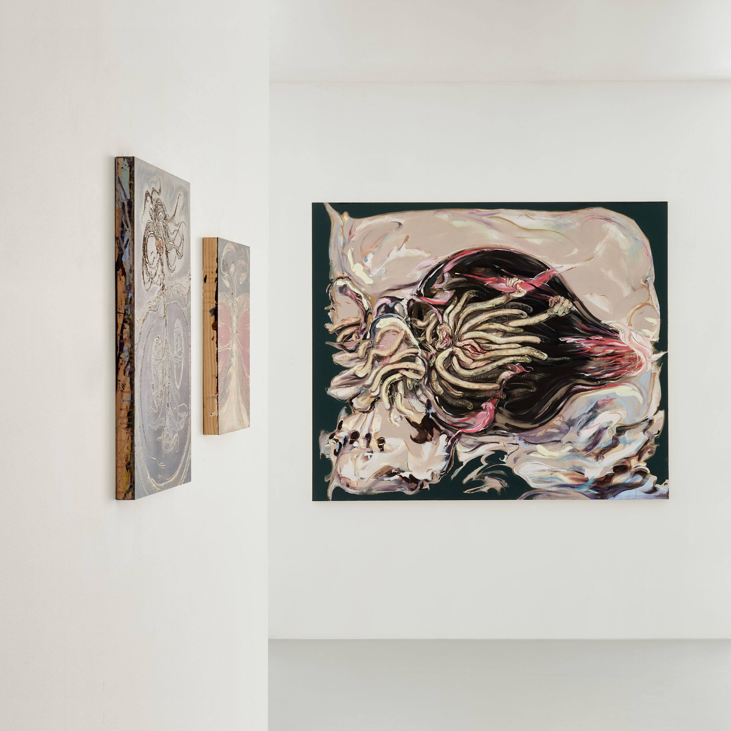 Represented by Taste Contemporary, Hanna Jo’s work is being shown for the first time in Europe. Her paintings pulsate a visceral energy that draw the viewers into the depths of the human body, where organs glide and affirm their restless presence. Through her art, Hanna Jo reminds us of the fundamental equality of all human beings while reflecting on the various identities that shape our lives.
