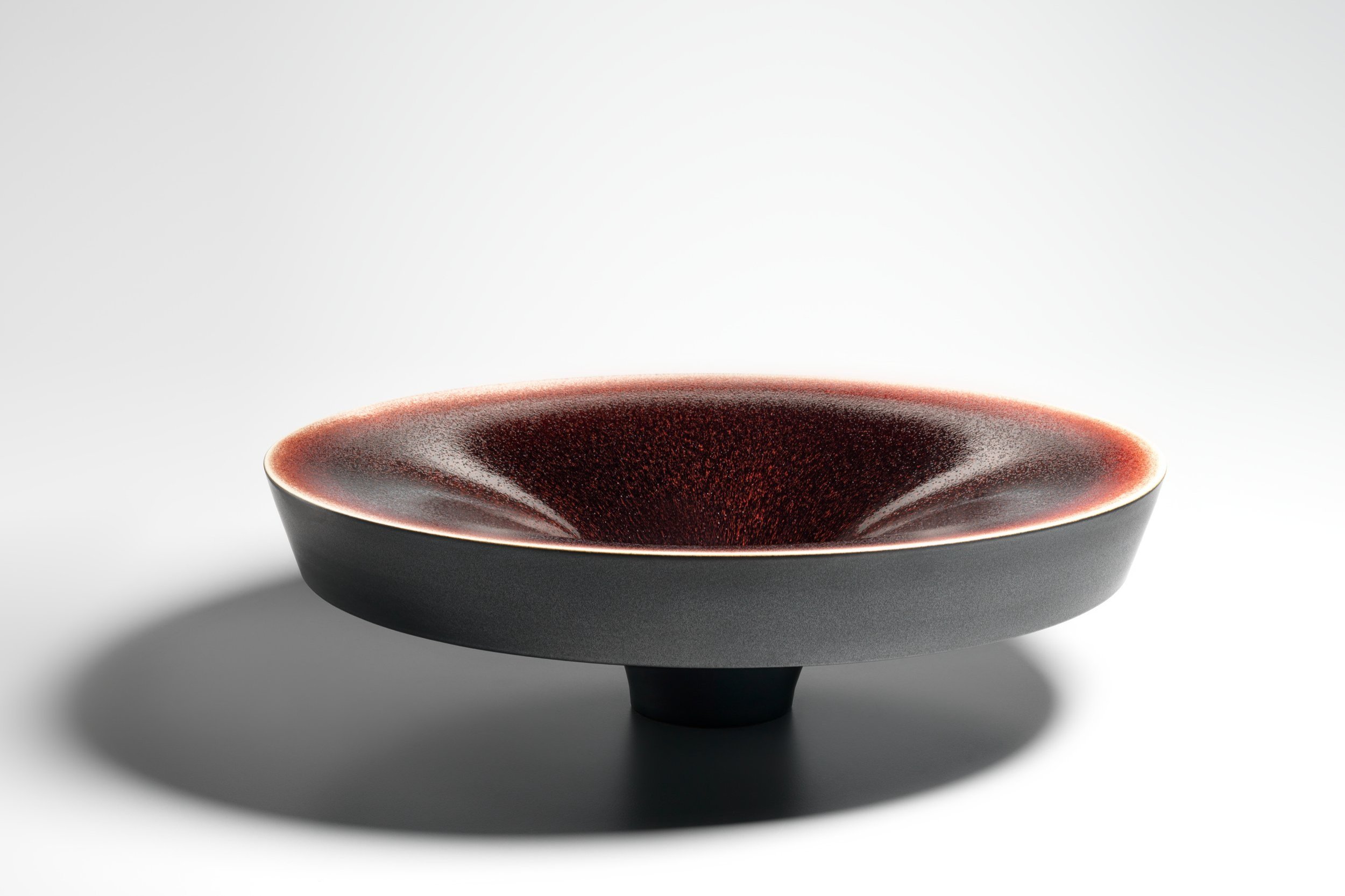 Over the years his work has primarily focused on the exploration of double walled vessels and in particular, an ongoing dialogue between interior, exterior and hidden spaces. The surfaces of his stoneware forms are textured by the use of a wide palette of glazes, which he has developed over a number of years. These range from strong reds and oranges, soft greens and celadons to rich browns and blacks. Today, Thomas Bohle’s quietly confident work reveals a deep understanding of material, a mastery of craftsmanship and a disciplined approach to making. Presented in groups, his vessels have an innate relationship with each other while individually, they also make a strong statement.