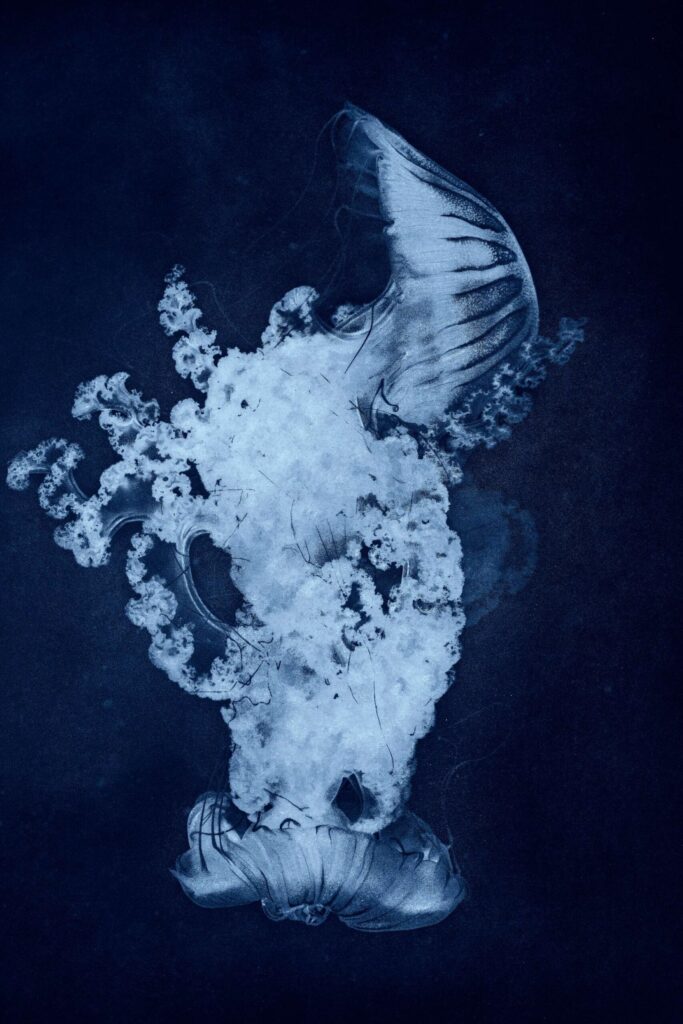 Her forms carry the memory of hand and movement. Never fixed, they are always becoming. Her images reject the accuracy of form, but question the resistance and plasticity of reality. Jellyfish appear not as motifs, but as suspended bodies, a contact between the living and the formless. Tangible, yet elusive, her photographs, created employing both analogue and heliogravure print processes, capture a state between memory and perception, between presence and disappearance.